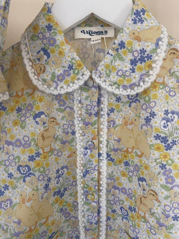 All fully lined in a pretty white lace , covered buttons. Elasticated arms & legs